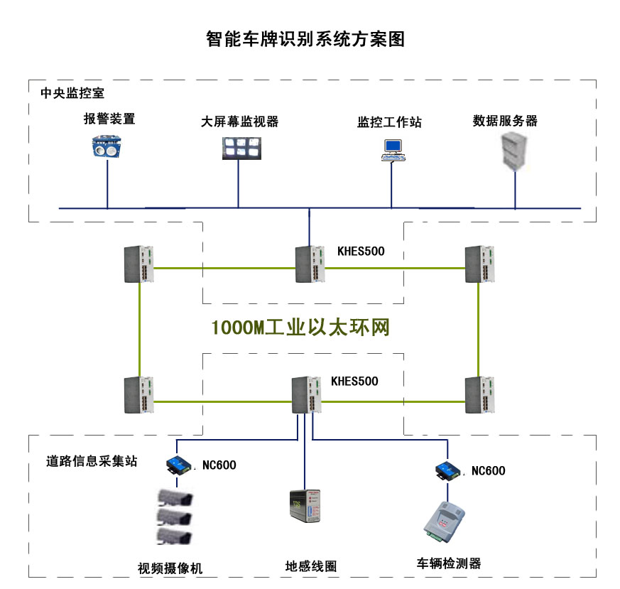 车牌识别系统有三级构成:监控中心、通信网络、数据采集单元。通信网络的作用是将采集到的信息送到监控中心进行统一处理。由于需要传输视频信号,因此通信网络采用1000M的光纤网络,并构建成光纤以太环网,在保证大数据传输的前提下又提高系统的稳定性。康海时代(COMHIGHER)KHES500系列工业以太网交换机完全符合工业环境对设备的要求,能够方便组建光纤环网,同时性能稳定,支持网管,抗干扰能力强,宽温范围大。